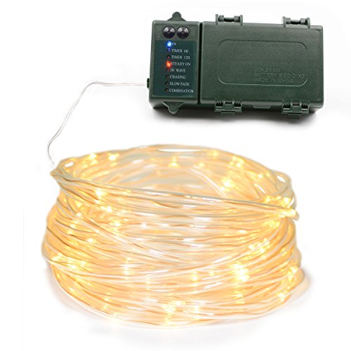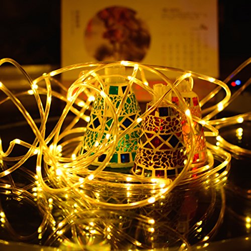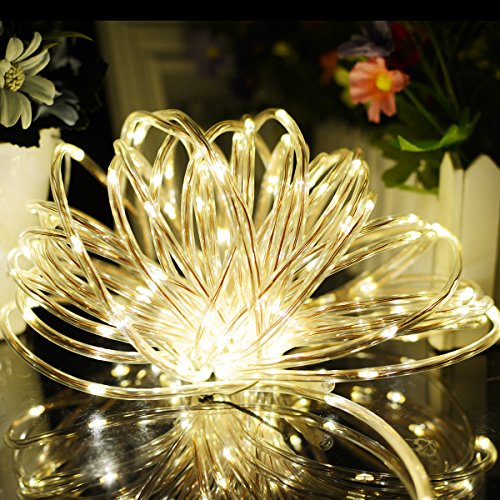 Lalapao Rope Lights 120 LED Battery Operated String Fairy Lights Christmas Lighting Decor Timer For Outdoor Indoor Garden Patio Lawn Decorations (Warm White)