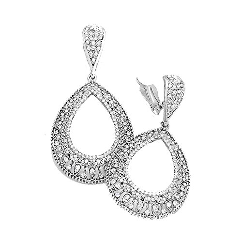 Vintage Style Silvertone Dangle Clip On/Non Pierced Earrings Accented with Rhinestones 3 in X 1.5 in