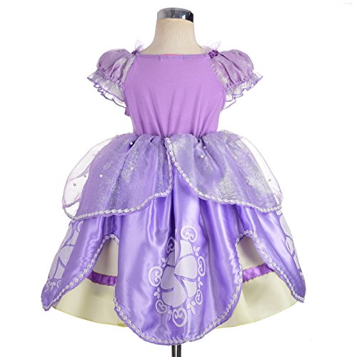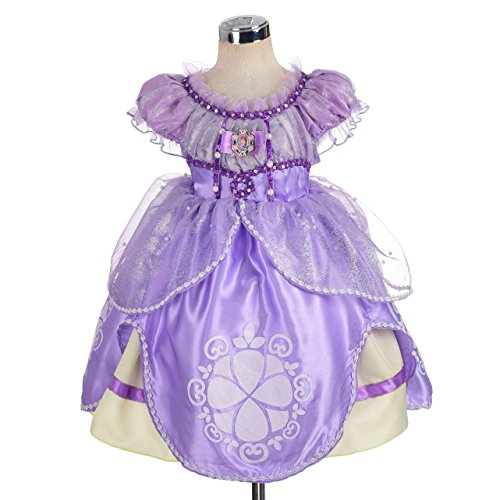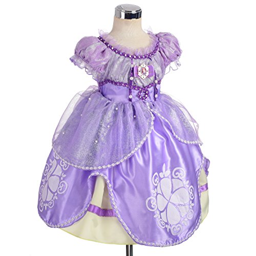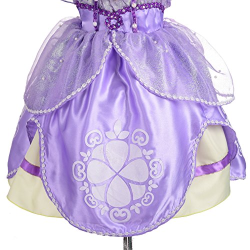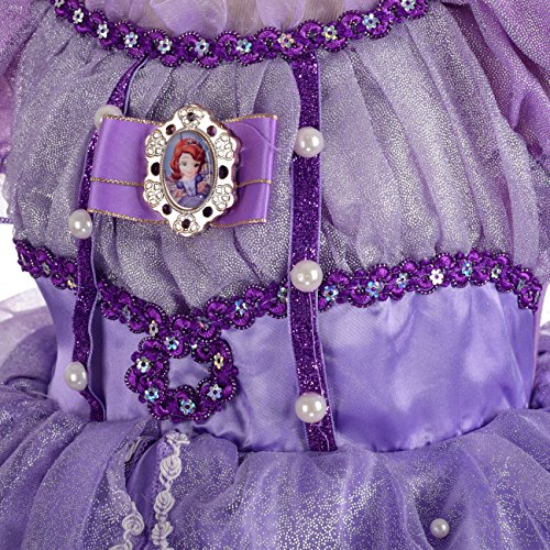 Stunning Princess Sofia style costume. The dress features with many elegant details. Beautiful lace ruffle neckline.