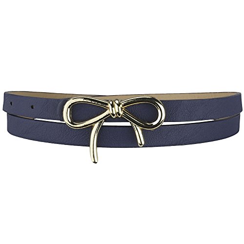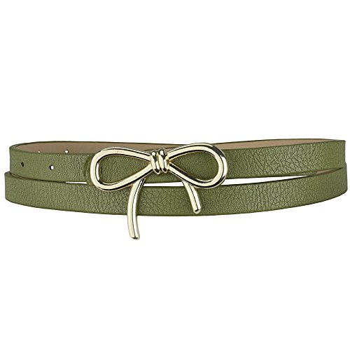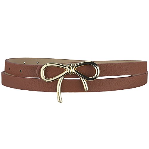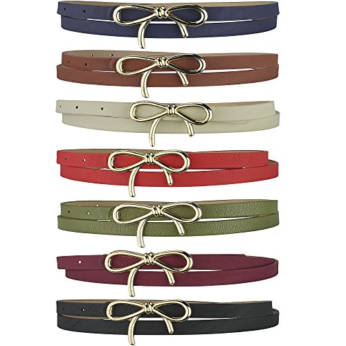 Beautiful feminine leather 'skinny' belt, the perfect accessory for day, office or evening wear. Sparkling gold buckle in bow shape, adds a detail that will leave everyone asking, "Where did you get that belt??" Adjustable to fit most bodies, and quality construction ensures no visible wear and tear, or threads fraying. Available in a wide range of colors, so you can wear this belt 365 days a year, from spring to autumn, summer or winter seasons.Feature