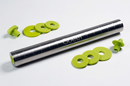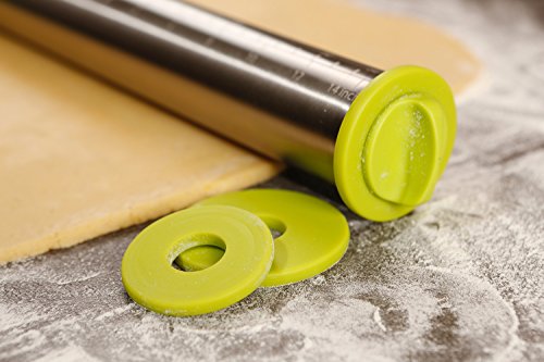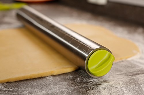 ★ REPRODUCIBLE PERFECTION, EVERYTIME: Roll dough to just the right thickness, consistently with every batch. 3 sets of removable discs (5/64″ / 2mm, 13/64″ / 5mm and 5/16″ / 8mm) and measurement markings printed on the pin itself take the guesswork out of sizing your dough to bake perfection.