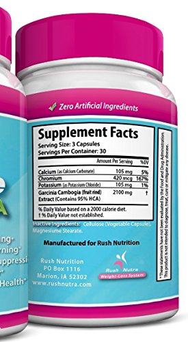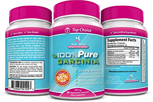 -. Binding : Health and Beauty -. Brand : Rush Nutrition -. Feature : EAT WELL WITH GARCINIA CAMBOGIA- You will eat what you want and feel full, for a very long time. Two bites of a delicious dessert and you're done? Our Garcinia Cambogia Extract is tailor made to curb hunger pains without restricting calories or changing your daily routine!! / NO SIDE EFFECTS - Most users report absolutely NO side effects with our garcinia cambogia. No jitters. No nausea. No headaches like other products on the market today. In fact, the contrary is true, many of our customers actually saw their mood improve including their energy levels (perhaps due to the lack of blood sugar fluctuations)! / FREE WELLNESS ES - Learn how to properly take our specially formulated Garcinia Cambogia. 100% Money Back Guarantee / LOOK GREAT - GARCINIA CAMBOGIA helps with Immediate stomach shrinkage which curbs your appetite significantly. Works great for belly fat, even if you've fought weight loss all your life. Exercise not required to lose weight. Wear clothes you couldn't fit into before. Watch your fat disappear fast! Prepare yourself for daily compliments from the opposite sex! / 95% HCA - HIGHEST ON AMAZON - THE BEST FORMULA - Garcinia Cambogia (80%) HCA to Maximize Weight Loss FAST -. IsAdultProduct : 0 -. Label : Rush Nutrition Diet System -. LegalDisclaimer : *These statements have not been evaluated by the FDA. This product is not intended to diagnose, treat, or cure any disease. -. Manufacturer : Rush Nutrition Diet System -. MPN : 1XGARCINIA -. PackageQuantity : 1 -. PartNumber : 1XGARCINIA -. ProductGroup : Health and Beauty -. ProductTypeName : HEALTH_PERSONAL_CARE -. Publisher : Rush Nutrition Diet System -. Studio : Rush Nutrition Diet System -. Title : 100% PURE Garcinia Cambogia Extract -95% HCA (Highest Available) Up to 7000/mg day for Maximum Results - Highest Garcinia Cambogia and HCA content on Amazon - Clinically Proven for Weight Loss