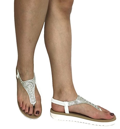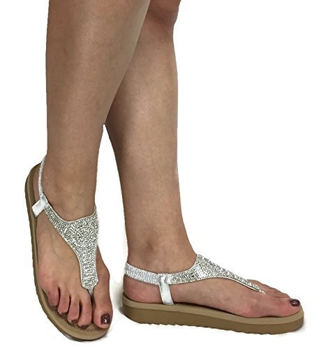Forever Fashion IRENA Womens Crystal Sandal Comfort Platform Slip On Elastic Heel Strap