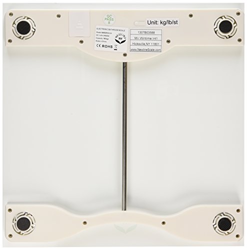-. Feature : SENSE ON Technology, No more tapping scale to turn on. Step on and get instant readings! / Capacity: 400 lbs / 180 kg; - Measurement in increments .2 lbs / Light weight, Ultra thin Trendy Design; Please take off the battery protection tag for 1st time use. / Scale must be placed on flat & hard floor for accurate weight, / Unit switch: the scale can display in Kg, Lb or St with unit press button switch at the back.