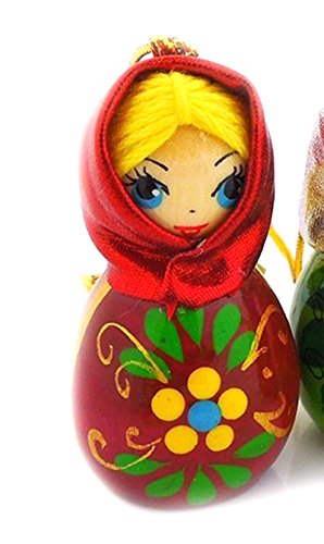 Hand Carved Painted Russian Wood Christmas Ornament Girl with Scarf 2 Inch