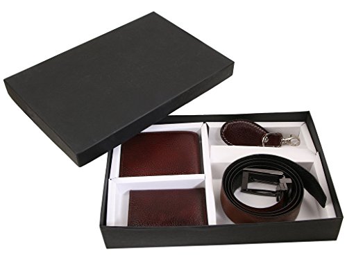 Binding : Apparel Product Description irin presents this exclusive 4 in 1 Combo set of genuine leather Wallet, Belt (Belt Size - 46), Card Holder And Key Chain. This combo is an ideal option for personal gifting, corporate gifting, employee gifting, exhibition purpose, diwali gifting, gifting for rewards and recognition etc. Beautifully packaged in Gift Box, these gift boxes are the perfect gift for any occasion. The items are constructed of natural full grain genuine leather with stylish stitching. 0