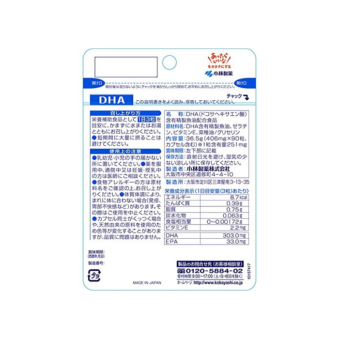 원본상품명: 小林製? 小林製?の?養補助食品DHA90粒×2 2315