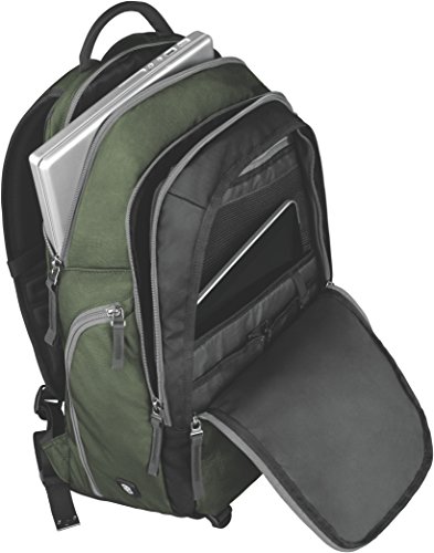 Studio : Victorinox Travel Gear Publisher : Victorinox Travel Gear Binding : Accessory Product Description Ultra-spacious padded computer pack with divided organization holds everything you need for trips to the office or the gym. Padded rear laptop compartment holds up to a 17" laptop. 10" padded portable electronics device pocket to protect an iPad, Kindle, tablet or other eReader. Interior organization includes full-length zippered mesh pocket, dual storage pockets, pen slots and key fob. Exterior organization includes vertical-zip front pocket and multi-purpose zip away stretch side pockets ideal for water bottle or umbrella. Compression-molded back panel and compression-molded, adjustable shoulder straps for maximum comfort. Adjustable sternum strap evenly distributes weight. 0