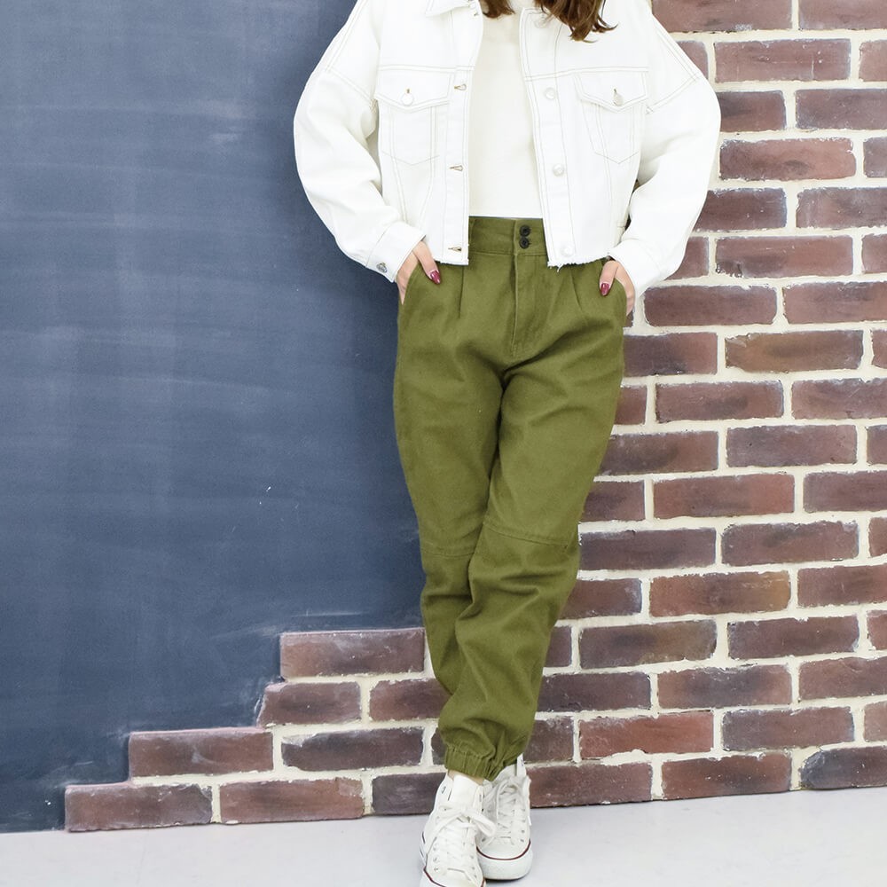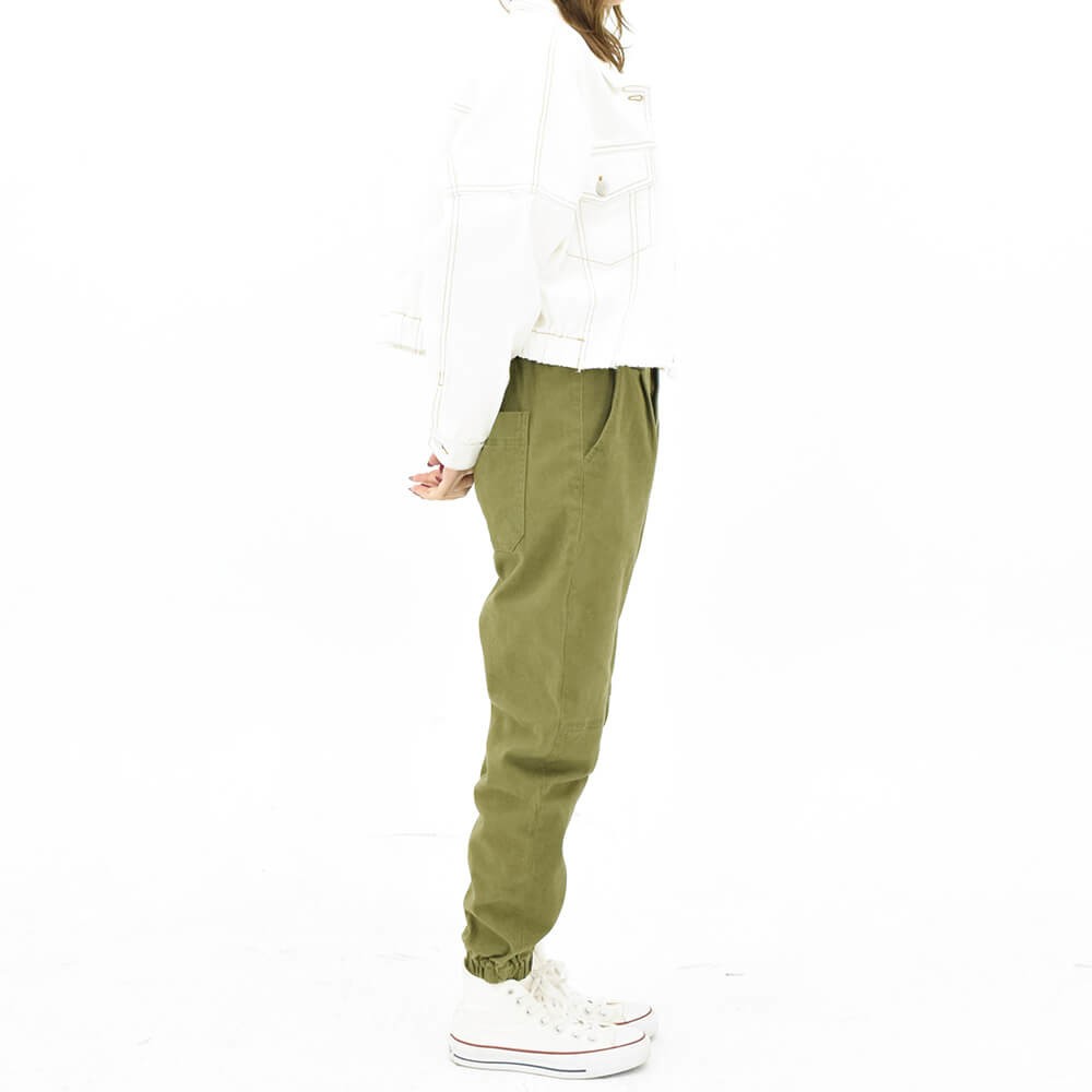 表面はやわらかみがあり、女性で履きやすい優しい雰囲気をもったカーゴパンツになっています。