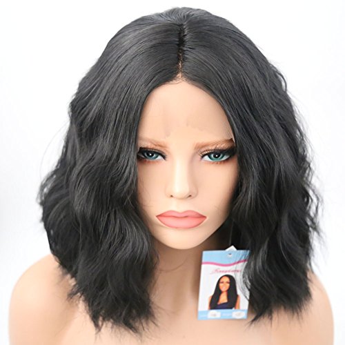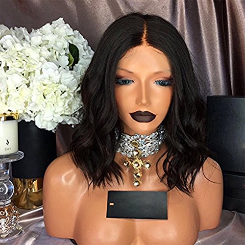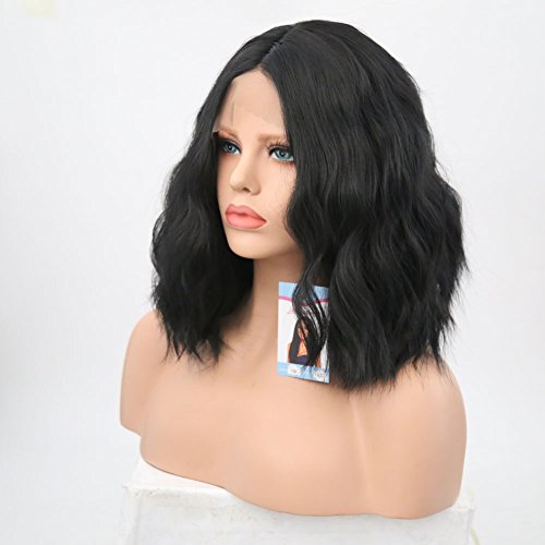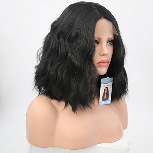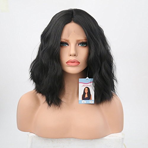 Rongduoyi Synthetic Fiber Hair Wigs 2017 Fashion Brazilian Hair Short Bob Wave Wigs Synthetic Lace Front Wigs Black Color Heat Resistant Synthetic Hair...