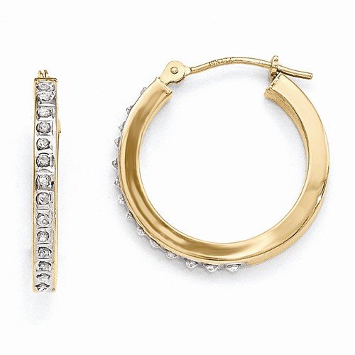 14k Yellow Gold Diamond Fascination Round Hinged Huggie Hoop Earrings (.01 cttw.) (21mm x 3mm)