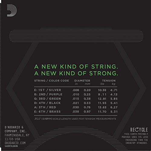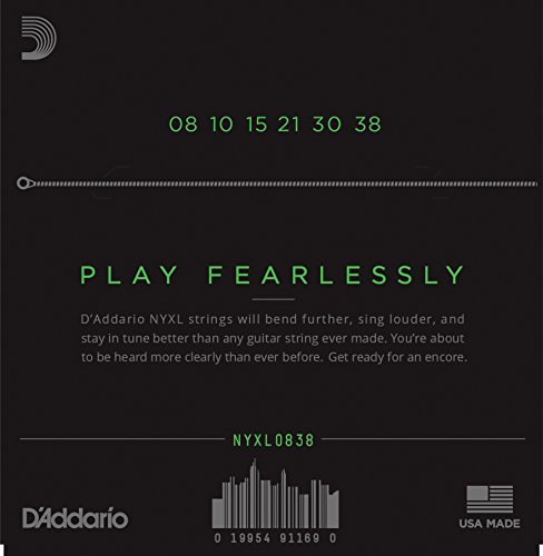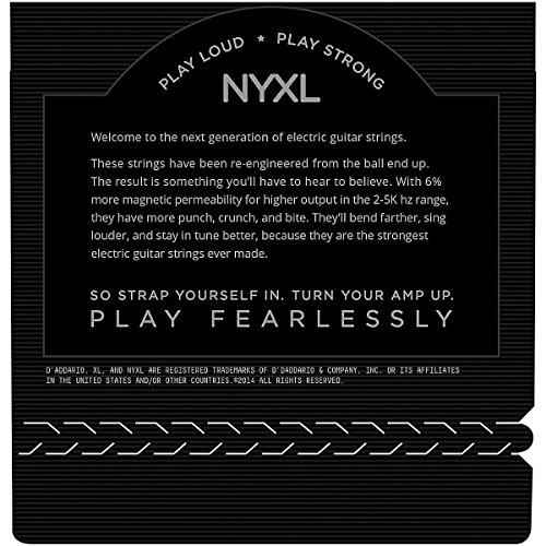 D’Addario NYXL electric guitar strings will bend farther, sing louder, and stay in tune better than any string you’ve played before. Envisioned, perfected, and manufactured by D’Addario in New York, this newly engineered, break-resistant, high-carbon steel core and plain steel alloy delivers a whole new level of freedom, confidence, and power. NYXL’s provide more strength and 131% greater tuning stability by utilizing a completely reinvented wire drawing process coupled with a revolutionary “fusion twist” process for the plain steels. The reformulated nickel plated string windings have greater magnetic properties resulting in higher output and enhanced mid-range frequency response for more presence and crunch.