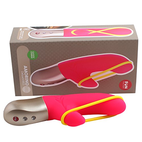 Der mit satter deutscher Technik bestückte Vibrator ist ein kompaktes Kraftpaket, das hält, was es verspricht. Mit nur zwei Tasten lässt sich ein Feuerwerk an Vibrationen steuern, die in zahlreichen Modi für lustvolle Stimulation sorgen. Pulsierende Vibration, kräftiges Rütteln oder staccatoartige Sensationen sind Teil des lustvollen Reiz-Repertoires von AMORINO. Das Besondere an diesem modernen Liebesgott: Er ist optional mit einem gelben Silikonriemen zu bestücken, der mit seinen Schwingungen Klitoris, Schamlippen und Vulva verzückt. So wird aus dem zur Penetration geeigneten Vibrator im Handumdrehen ein effektiver Aufliegevibrator zur äußeren Massage. Der ebenfalls aus bestem Silikon gefertigte Riemen kann auch über Kreuz gespannt werden, was ihn straffer und härter macht. Wird der Riemen abgenommen, ist AMORINO zur Penetration bereit - übrigens wahlweise auch anal, denn sein Fortsatz verhindert ein Hineinrutschen. Vibratoren der Bremer Fun Factory werden in Deutschland in bester Verarbeitung gefertigt. Silikon ist dabei ein ideales Material für erotisches Spielzeug: hautfreundlich, ungiftig und antiallergen, samtig weich und flexibel, geruchsneutral und leicht zu reinigen. AMORINO ist mit Lithium-Ionen Akkus bestückt, benötigt also keine Batterien, sondern ist wiederaufladbar. Das Laden der hochwertigen Akkus kann erstmalig bis zu acht Stunden dauern. Die Akkus erleiden keinen "Memory-Effekt". Im Lieferumfang enthalten ist ein USB-Ladekabel, mit dem das Toy an allen Computern oder Laptops schnell neue Kraft tanken kann. Eine rote LED am magnetisch andockenden Ladeteil informiert über den Ladestand. Gesamtlänge: 17,6 cm, Ø 2,7 cm; AMORINO ist vollständig wasserdicht. Hinweis: Das gelbe Stimulationsband ist nur zur äußeren Verwendung geeignet. Bei Verwendung OHNE Stimulationsband weist AMORINO an zwei Stellen sanfte Rillen zur Befestigung auf, die eine Benutzung ohne Band in keinerlei Weise beeinflussen.Feature