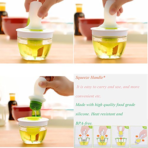 ★Unique Design-Easy use and brush a thin coat of oil. Just squeeze the handle of the brush to pickup the oil mixture, release as desired on chosen surface .It has 4 rows of 13 bristles each for a total of 52 bristles.So it will soak up & hold a lot more of whatever you're brushing or basting onto your food.It has 4 rows bristles .Each for a total of 97 bristles.So it will soak up & hold a lot more of whatever you're brushing or basting onto your food.