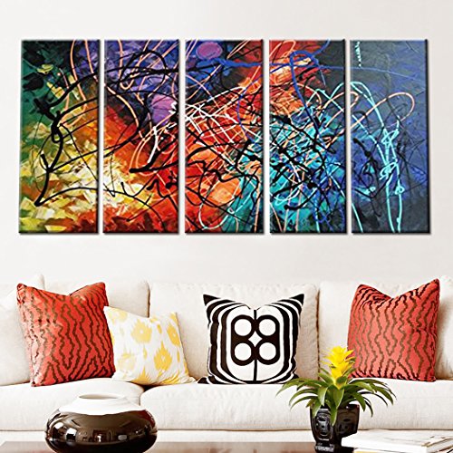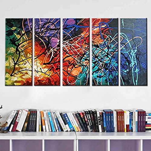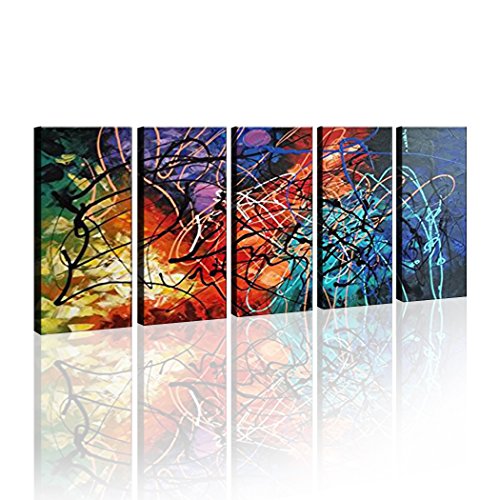 -. Title : FLY SPRAY 5 Panels Contemporary Art Colorful Lines Oil Paintings On Canvas Stretched Framed 100% Hand Painted Abstract Painting Wall Art Home Decoration