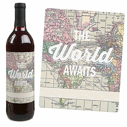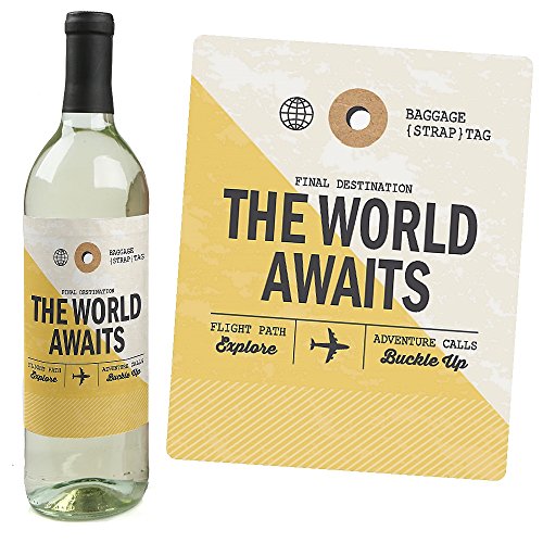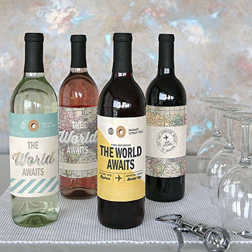 World Awaits - Travel Theme Wine Bottle Labels - Set of 4