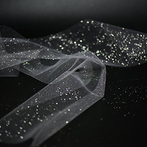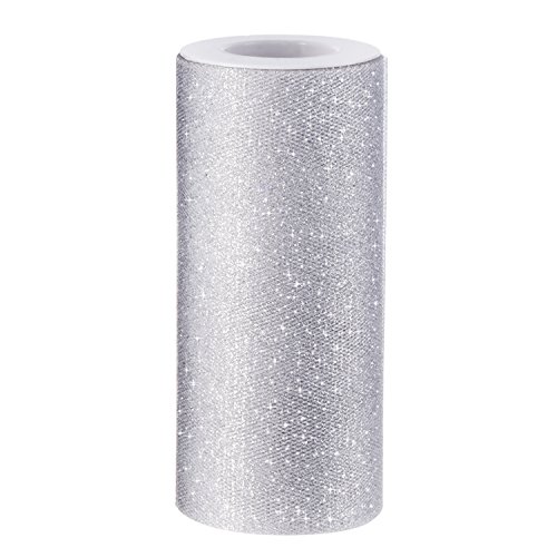 Outus Sparkling Tulle Ribbon Roll Glitter Tulle Spool, 6 Inches by 25 Yards, Silver