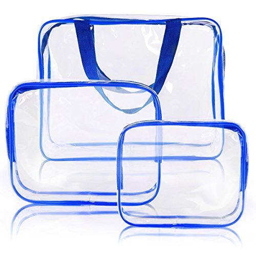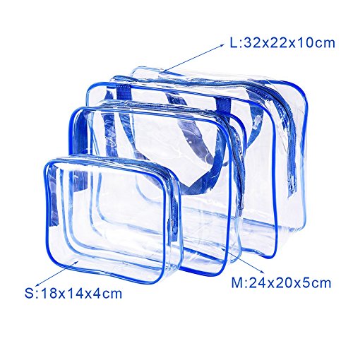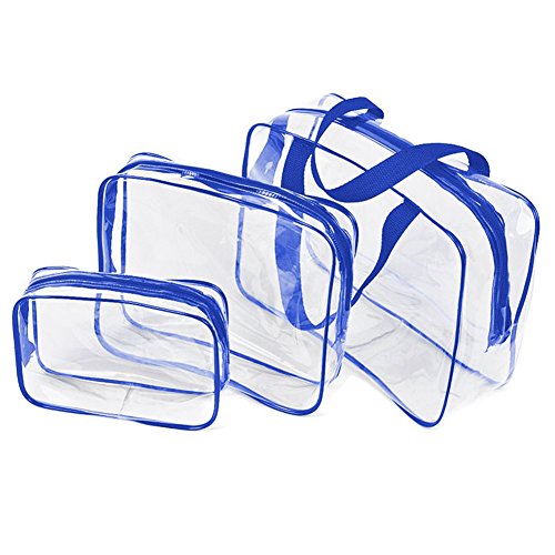Winrase 3 in1 Clear PVC Makeup Bags Travel Tolietry Bag Waterproof Storage Bag with Zipper Closure (Blue)