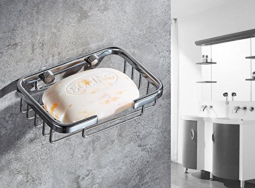 Lifechaser Bathroom Stainless Steel Soap Dish Soap Box Sponge Holder Wall Mount, Polished Chrome
