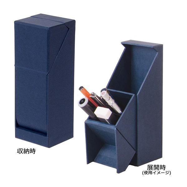 | 使わないときに中身が見えないすっきりとしたペンスタンドです。展開すると40度にキープされて取り出し易くなっています。 |