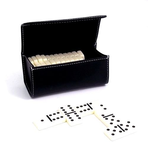 Studio : Bey-Berk Publisher : Bey-Berk Binding : Toy Product Description Domino Set in Leather Case. Dominoes are a great game for the entire family. People from young to old enjoy playing this classic. Whether building or playing, this game is sure to bring lots of laughter and learning! Great game for camping or rainy days at home! Materials: Leather. Dimensions: 5"L x 2"W x 2.5"H; Weight: 0.6 lbs 0