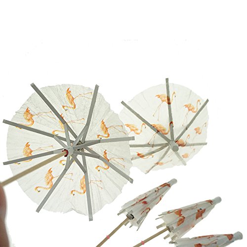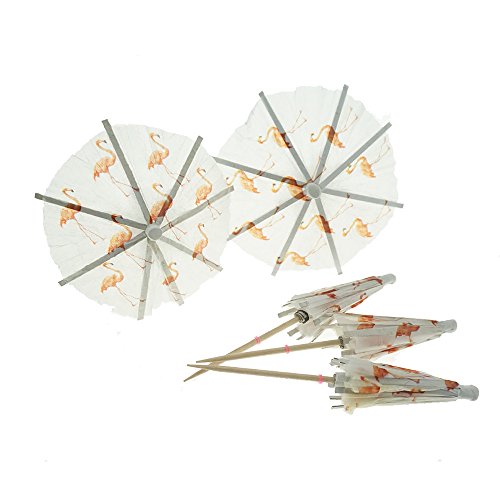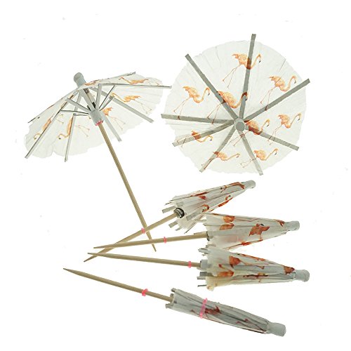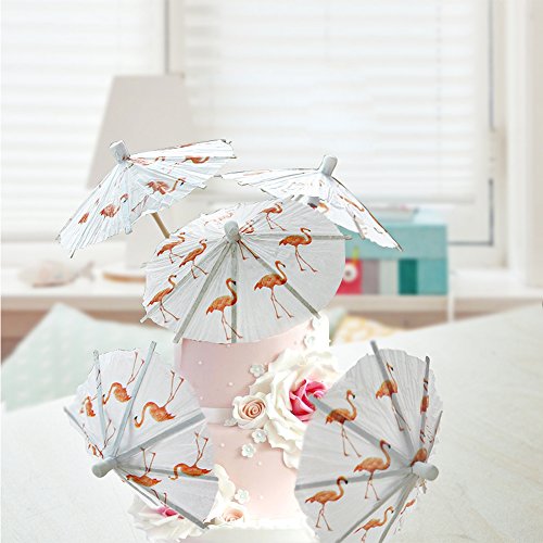 Flamingo Paper Umbrellas Cocktail Parasol Picks Cupcake Toppers Picks Set of 10 by GOCROWN