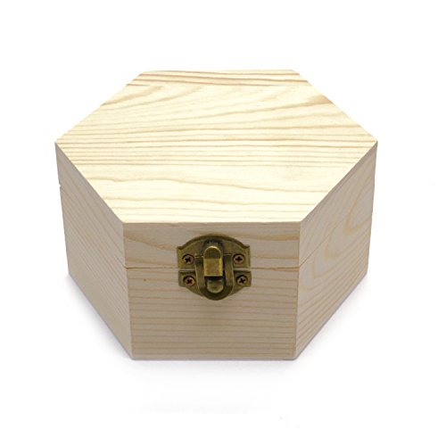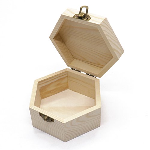 HUELE Unpainted Wood Craft Hexagonal Necklace Bracelet Earrings Trinket Box Container Dried Flower Gift Box
