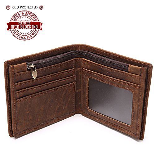 -. Title : Itslife Men's Rfid Blocking Cowboy Genuine Natural Crazy Horse Leather Bifold Wallet