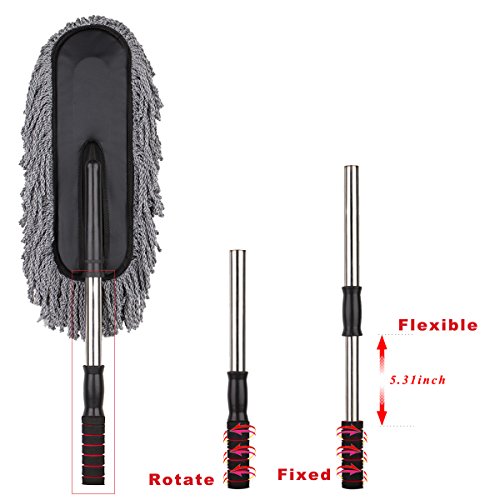 -. Feature : Dimension: Minimum length 23 Inch - Maximum length 39 inch, package content: 1 Duster + 1 FREE gift detail duster / Material: Premium Superfine fiber Wax Mop, Aluminium alloy handle / The electrostatic microfiber dusting surface sucks up the dirt and dust quicker / Wide scope of application, works well for the most parts including dusting car, window, and interior seats, dash etc. It works great in the house clearing as well / Your complete satisfaction is guaranteed, any unsatisfied, just contact us, we will offer 100% full refund or replacement