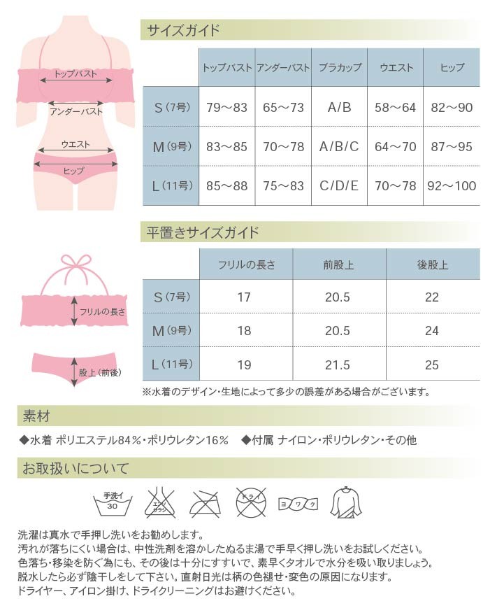 大胸さんも小胸さんも可愛くカバーしてくれます!ショーツのフリルはウエスト周りをカバー。