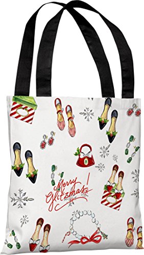 One Bella Casa Merry Glitzmas Pattern Tote Bag by Timree Gold, 18"x 18", White/Multi