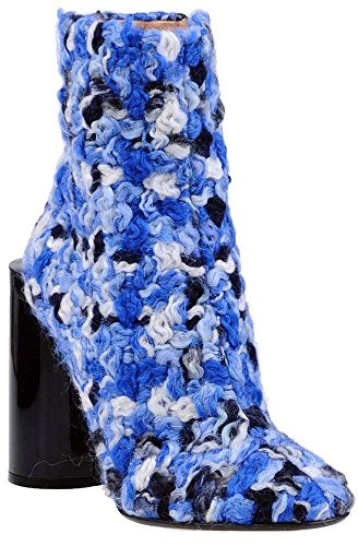 Product Description Ankle boots in checked virgin wool and goat leather. The shoe's cylindrical 8cm heel intentionally extends beyond the back. The boots fasten via an inside zip closure. Made in Italy. 0