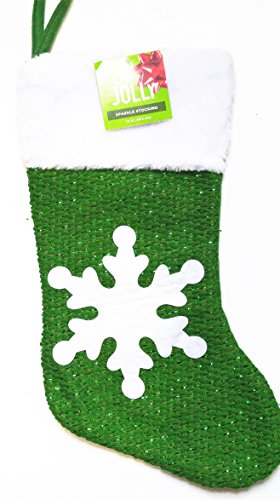 Christmas Sparkle Stocking, 19 Inches, Green and White with White Snowflake on Front