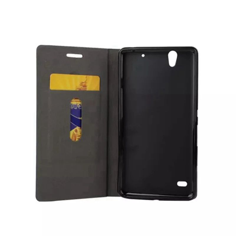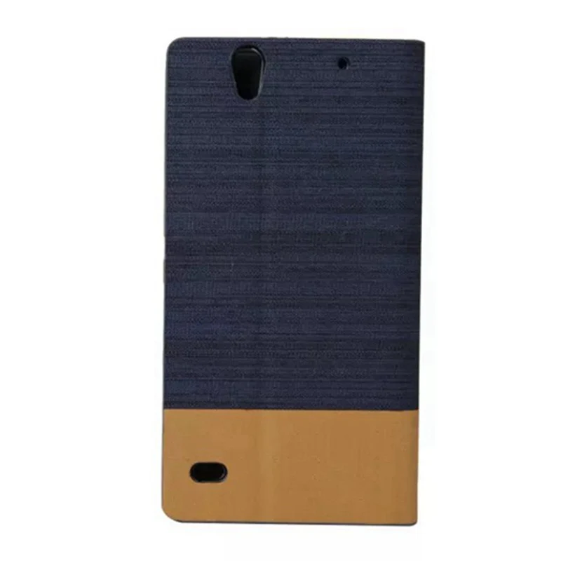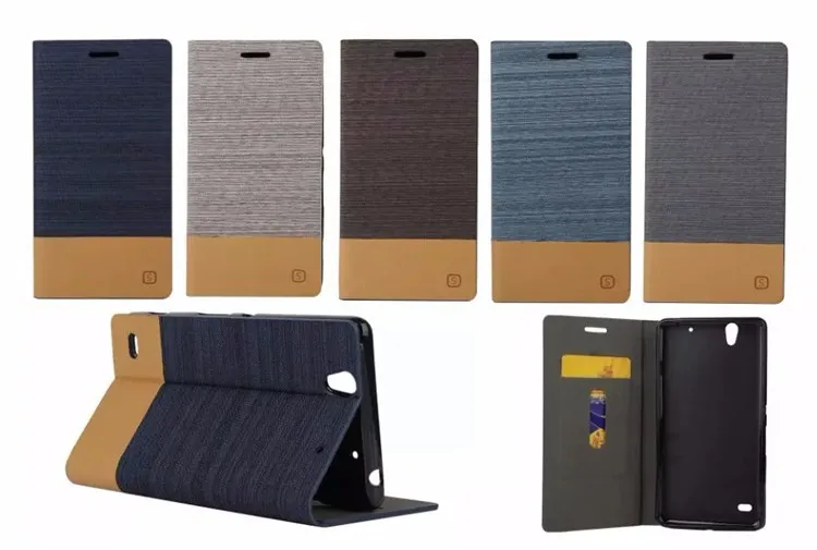 Feature 3:Luxury Canvas Style PU Leathe Flip Case Cover for Sony Xperia C4