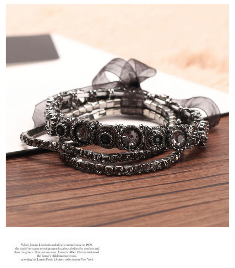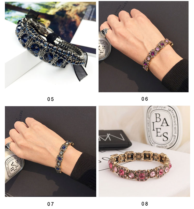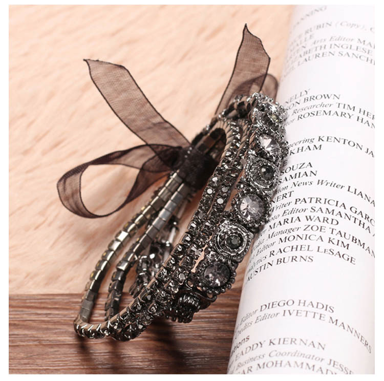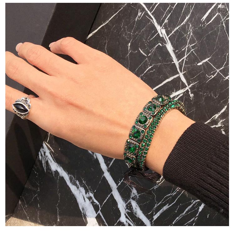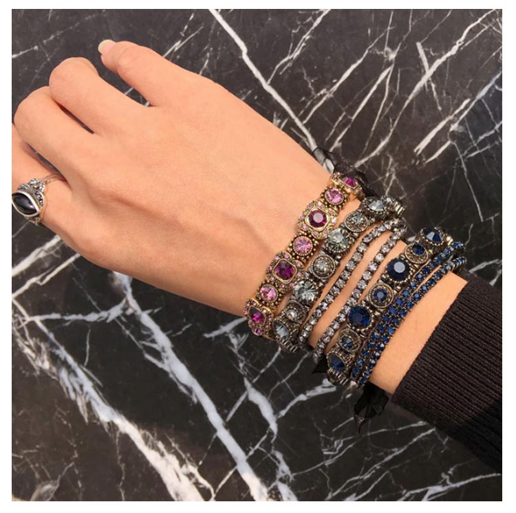 | きらりと輝くビジューを均等に並べたリッチなブレスレット。シンプルながらもしっかり存在感があり、コーデのアクセントに役立つアイテムです。上品でありつつも、エッジィなアクセントをプラスするブレスは華やかな手首を演出。 | |