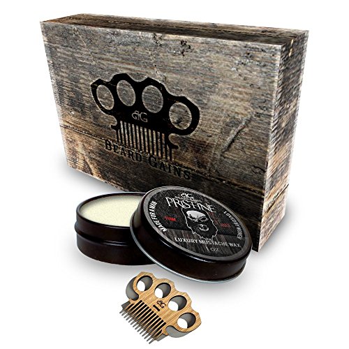 Studio : Beard Gains Publisher : Beard Gains Binding : Misc. Product Description Mustache wax is an important "beard" styling product that usually comes in various manly scented aromas. The reason we quoted "beard" in the previous sentence is because a mustache is not a beard per say, but it is the roof to the home of your beard, the top hat to a tux, and what better way to showcase the importance of a mustache other than the exquisitely styled, luxurious Van Dyke Beard (which we have a comb for). br>What is mustache wax? Mustache wax refers to stiff pomade that is applied on mustache as a grooming product or aid. What is it made of? This wax can be made of numerous ingredients including beeswax, natural fragrance, lanolin, and jojoba oil. What is the purpose of it? Mustache wax is used to hold beard in place, particularly in the extremities. It also helps in styling hair. The stiffness or strength of the required mustache wax depends on the whisker length as well as the desired mustache style. How do you apply mustache wax? How mustache wax is applied depends on the desired style. For instance, you can heat the wax and apply it using your fingers or rub it in your hands to warm it up. Apply mustache wax from the center moving to the edges. For a natural look, apply a moderate amount on the mustache without twisting the ends. Work in the wax with a mustache comb and blow-dry it to give your facial hair a more natural look. For a handlebar look, apply more wax and twist edges of your mustache into a point. Grab mustache from the base and twist it if you have long hair. Don't blow-dry your mustache because doing so will soften it. Just work the tips of your mustache into curls or any style that you desire.