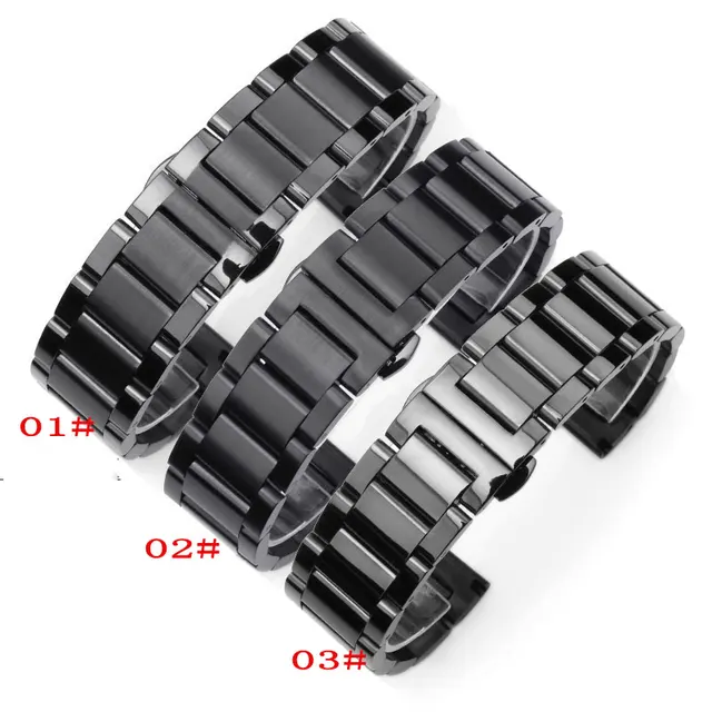 블랙 손목 시계 스테인레스 스틸 시계 스마트 시계 손목 밴드 맞춤 기어 S3 moto360 Ticwatch 22 미리메터 패션 시계 스트랩