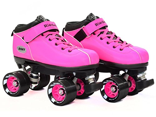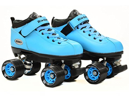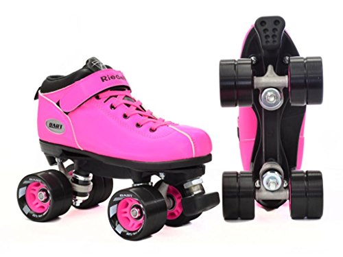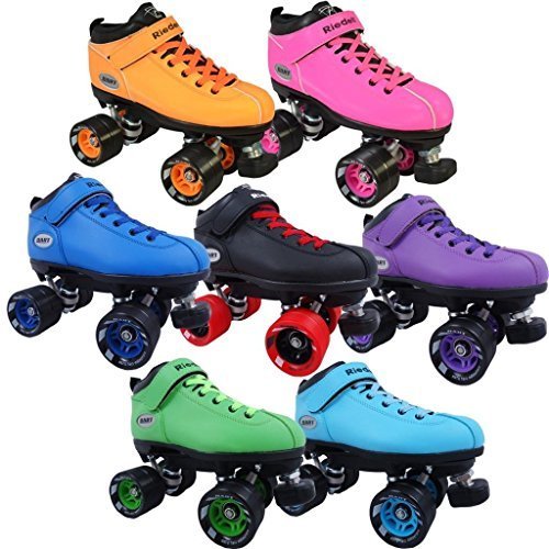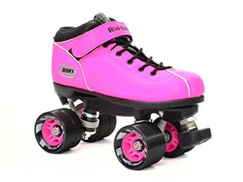Studio : Riedell Publisher : Riedell Binding : Misc. Product Description Riedell Dart Speed Skates - Black, Purple, Green, Ice Blue, Orange, Pink, or Royal Blue - Brand new speed skates from Riedell - The Riedell Dart! Riedell Dart quad speed roller skates are the hottest new item from Riedell. The Dart speed skates come in 7 colors so make sure you check them all out! Riedell Dart roller skates are priced just right and they feature an ultra comfortable boot with special indoor Riedell Dart wheels that come with matching hubs. These manmade boots are super high quality from Riedell. The Riedell Dart roller skate is the best option under 100 dollars on the market today for speed skates. Riedell Dart roller skates are in high demand and have been known to sell out in the past. Don't let this opportunity for Riedell Dart roller skates pass you by! - SIZING: These skates come in Men's sizes only. Ladies, please select one size down from your normal shoe size for the equivalent fit. For example; A Men's 7 equals a Ladies 8. Remember, since the skates are in Men's sizes, the men's size you select will be shipped out to you. For example; If you select a Mens 7/Ladies 8 when placing your order, a size 7 will be shipped to you. Sizes 1-3 are Unisex Kids sizes. 0