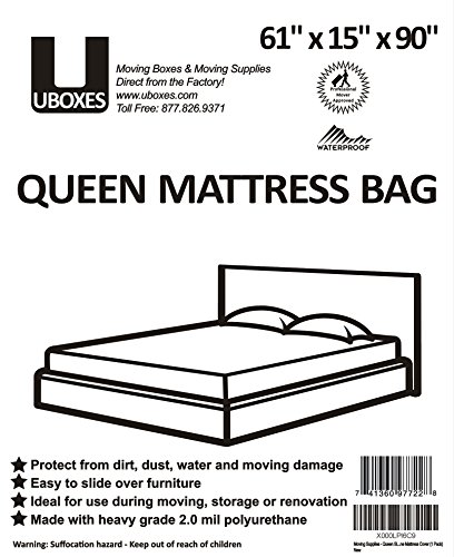 -. Binding : Office Product -. Brand : Uboxes -. Color : Clear Plastic -. EAN : 0741360977228 -. Feature : 1 Queen Size Mattress Cover 90" x 15" x 61, 15" width sufficient for most pillow top mattresses! / 2 Mil Heavy Duty Polyethylene Material! Tear resistant and water resistant! / Slips over the mattress like a pillow case and can be sealed with tape! Protect your mattress from Dust, Dirt, Bugs and Spills while in transit! / Be sure to buy one for your box sP.R.Ing as well! / High Quality - Satisfaction Guaranteed - Transit time is approximately 1-2 business days - UBOXES is #1 source for Moving Boxes & Supplies Online - Moving Kits available for 1-10 Bedroom Homes -. Label : Ubooxes -. Manufacturer : Ubooxes -. Model : QUEENCOVER01 -. MPN : QUEENCOVER01 -. NumberOfItems : 1 -. PackageQuantity : 1 -. PartNumber : QUEENCOVER01 -. ProductGroup : Office Product -. ProductTypeName : OFFICE_PRODUCTS -. PublicationDate : 2015-03-06 -. Publisher : Ubooxes -. Size : 61x15x90" -. Studio : Ubooxes -. Title : UBOXES Moving Supplies Queen Size 90" x 15" x 61" Inches 2 MIL Heavy Duty Polyethylene Mattress Cover (QUEENCOVER01) -. UPC : 885781989344