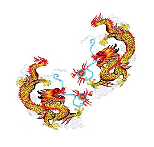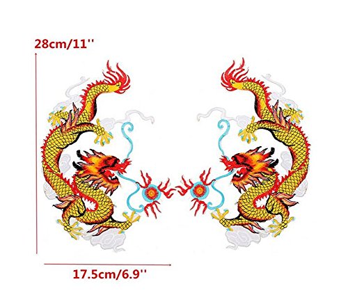 Ximkee 1 Pair Chinese Gold Dragon Embroidery Appliques Sew Iron on Patches