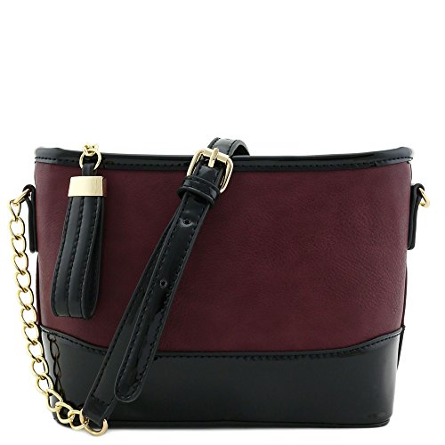 This faux patent leather trim accented small size shoulder bag makes easy to organize your everyday items.