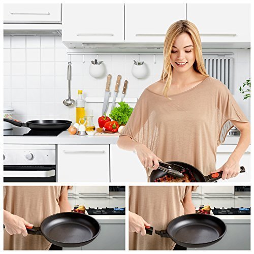 Product Description Do You Need a Nonstick Fry Pan with Removable Handle and Cover Lid? You definitely can't go wrong with our fry pan and its premium non stick cooking surface. It allows you to sear, fry, and brown food with minimal oil - or cook with no oil altogether! This ensures that your food retains all the vitamins and minerals that your body needs. But that's not all. Our pan offers so much more! Check Out These Features of Our Non-stick Frying Pan with Clever Lid ? PROFESSIONAL QUALITY - Non-stick 11" frying pan features a flared rim to prevent drips when pouring. Has thick 4.5 mm warp-resistant bottom that allows even distribution of heat from all types of heat sources (induction, radiant, ceramic, halogen gas). ? EASILY REMOVABLE HANDLE - SecureSnap removable handle quickly detaches by simply pulling the release button and tilting up the pan at 30-degree angle. Reduces the pan length from 19.5" to 13.4". Save precious space in the fridge, oven, sink, cupboard, or dishwasher. The handle is oven safe up to 400°F. ? INCLUDES LARGE UNIVERSAL LID - Cool-touch elevated lid has heat-resistant silicone rim, tempered glass, and small steam vent. Fits 9.5", 10" and 11" pots and pans. ? SAFE NONSTICK SURFACE - Our frying pan has a strong 2-layer reinforced non stick PFOA-free surface. Prevents scratches and allows no-oil cooking. The pan is oven safe up to 480°F. ? EASY CLEANING - Clean it in the dishwasher or wash it by hand. Remove handle for easy cleaning. What are you waiting for?Get your Nonstick Fry Pan with SecureSnap Handle and Large Clever Lid now, and experience trouble-free cooking starting today! 0 |