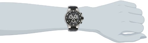 -. Feature : Chronograph features include 60 second, 30 minute timer, and day sub dials / Silver-tone, stainless steel, case with a Black bezel and a Black, genuine leather, strap / Silver-tone hour markers and luminescent hands on a Black, patterned, dial / Swiss Quartz Chronograph movement / Water-resistant to 50 M (165 feet) / Chronograph features include 60 second, 30 minute timer, and day sub dials / Silver-tone, stainless steel, case with a Black bezel and a Black, genuine leather, strap / Silver-tone hour markers and luminescent hands on a Black, patterned, dial / Swiss Quartz Chronograph movement / Water resistant to 165 feet (50 M): suitable for swimming and showering