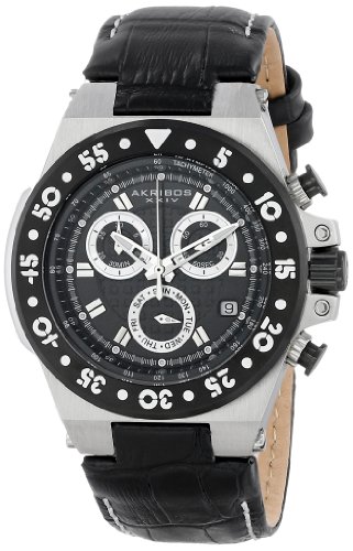 -. Title : Akribos XXIV Women's AK667BKS Conqueror Swiss Quartz Chronograph Silver-tone Stainless Steel Black Leather Strap Watch