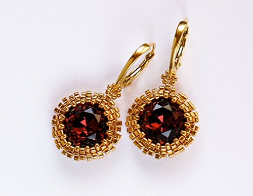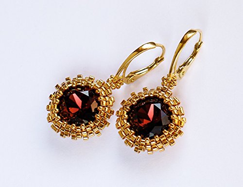 -. Brand : Julia Lavrik Design -. Color : Burgundy, Red Wine -. Department : Women -. ProductGroup : Guild Product -. ProductTypeName : GUILD_JEWELRY -. Title : 24k Gold filled High Fashion Luxury Beadwork Drop/Dangle Earrings with Rich Burgundy Swarovski crystals Gift for Women Leverback Handmade Jewelry