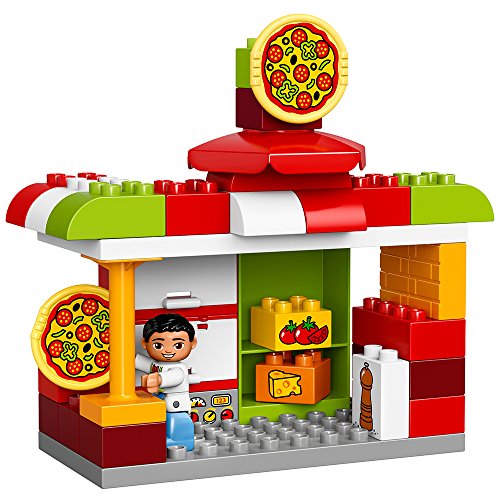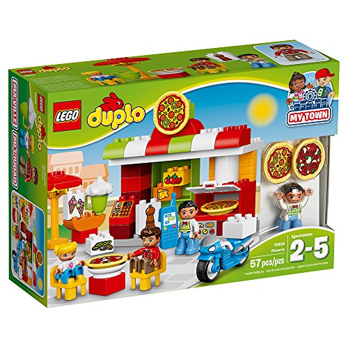 Play out real-life scenarios in LEGO DUPLO My town: a recognizable world with modern DUPLO figures. Toddlers will love serving delicious pizza straight from the oven in this colorful restaurant, while learning the routines and Etiquette of eating out. They can also take orders over the phone then load up the bike for delivery. This colorful learning toy for toddlers includes 3 DUPLO figures.