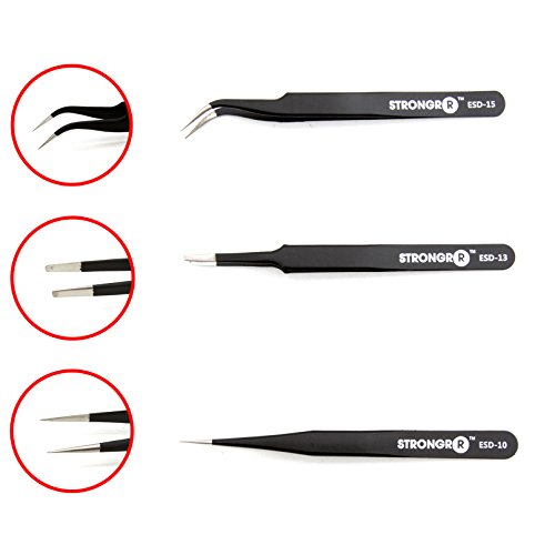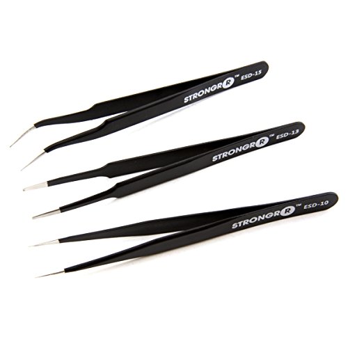 Strongrr Professional Grade ESD Tweezers Set with a durable handy storage pouch was designed by electronic technicians to meet the demand of everyday use. Its safe ESD coating helps protect electronics from static damage. Use this tweezers tool kit when the most precise repairs are demanded. We use only the highest quality materials during the manufacturing of our tools so our customers can experience the consistency in performance which they demand.