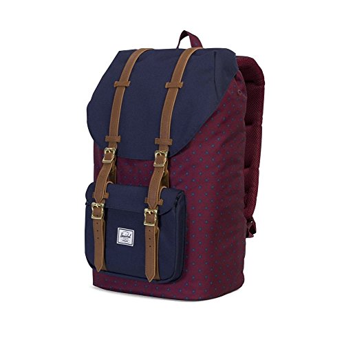 Herschel Little America Backpack is a popular silhouette that elevates an iconic mountaineering style with modern functionality. Featuring signature striped fabric liner, air mesh back padding, and contoured shoulder straps.