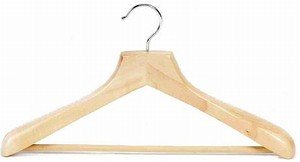 -. Feature : 18" Length x 2" Wide Shoulders / Natural with Clear Lacquer & Chrome Hook / Non-Slip Pant Bar / Sold Individually