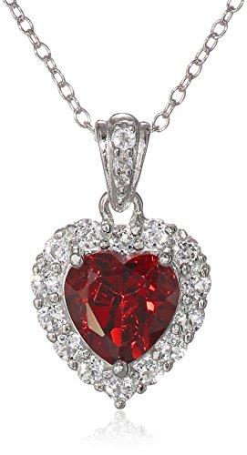 - Title : Platinum-Plated Sterling Silver Gemstone & White Topaz Halo Heart Pendant Necklace, 18"